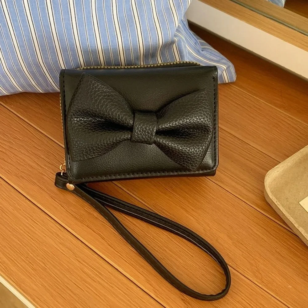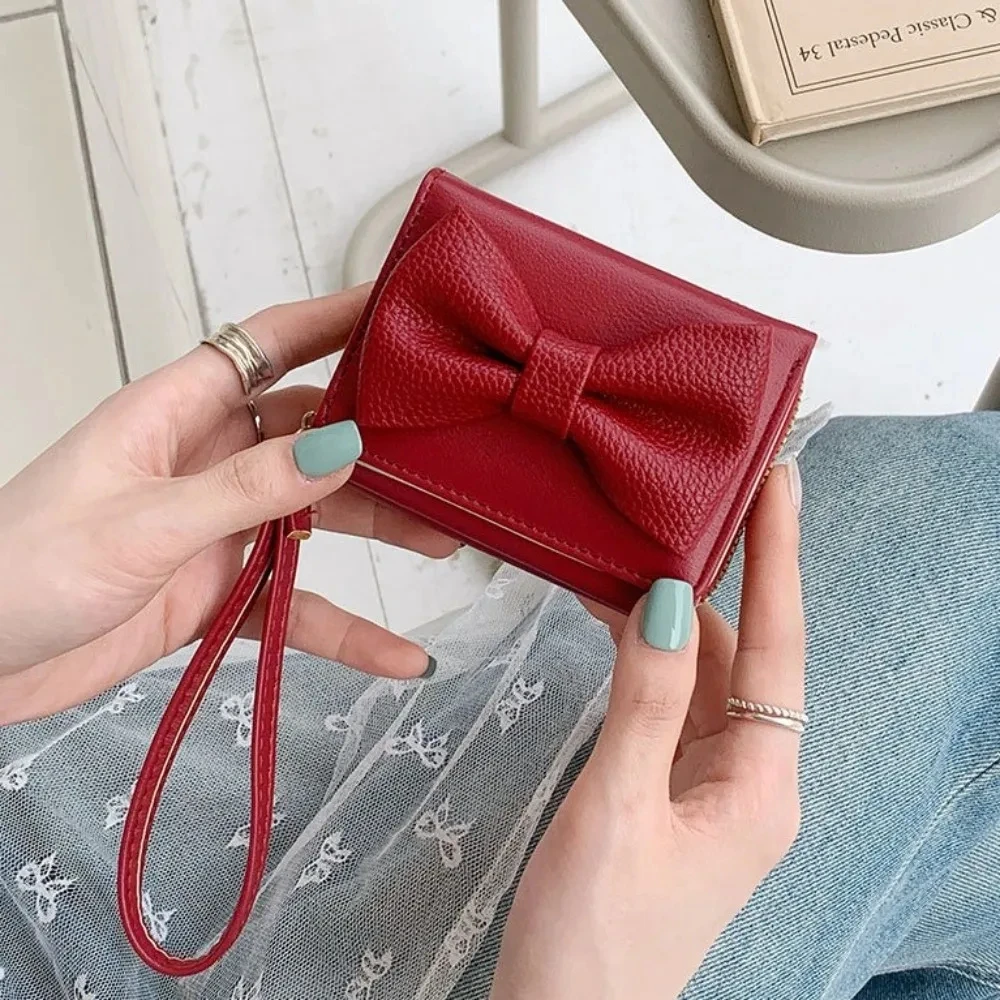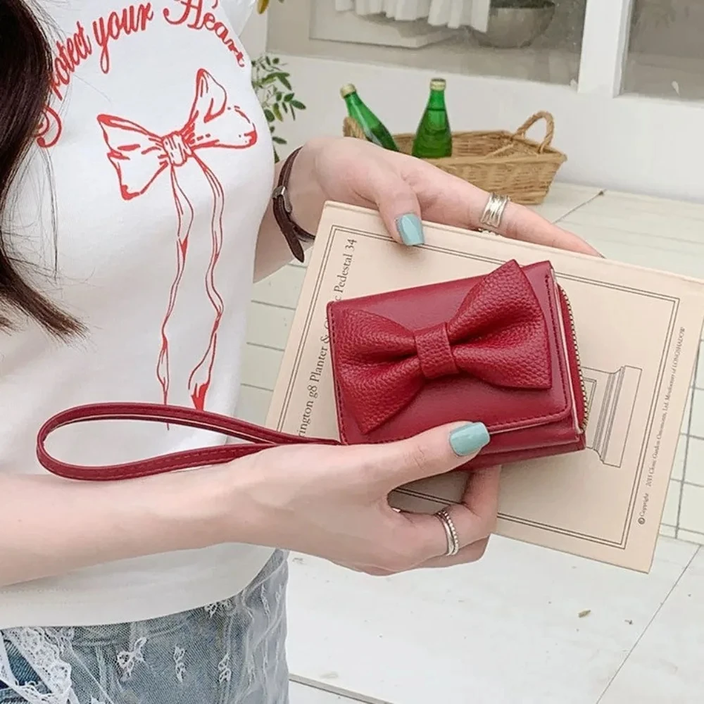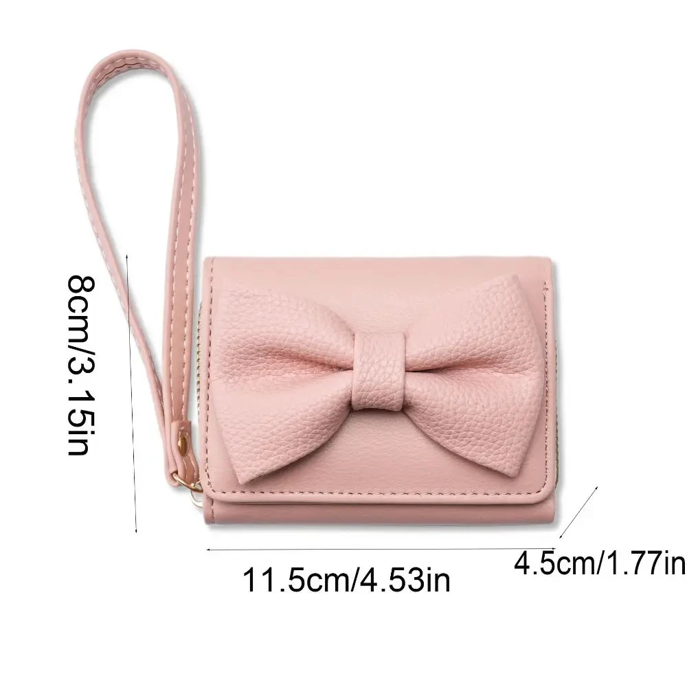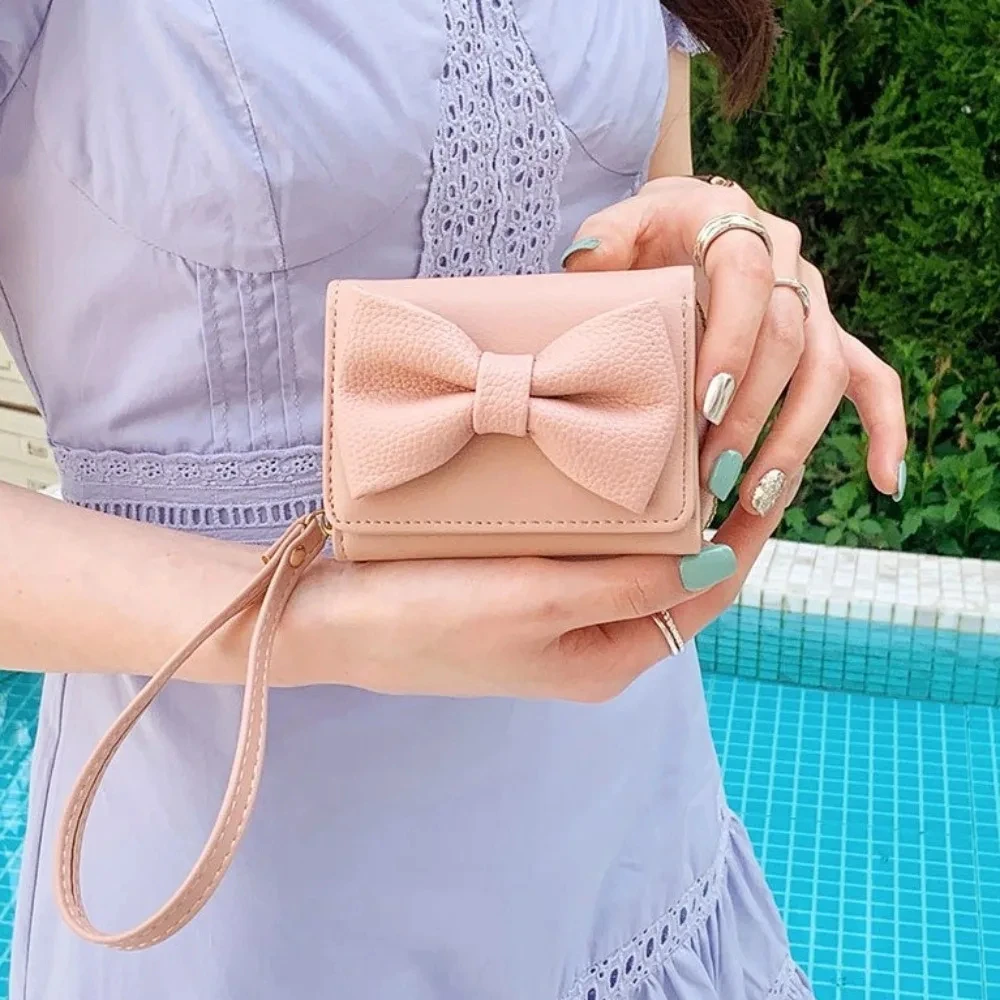 Fashion Wallets Girls Cute Bow Small Wallet Aesthetic Card Holder Classic Three Fold Purse For Women Student Simple Coin Pouch