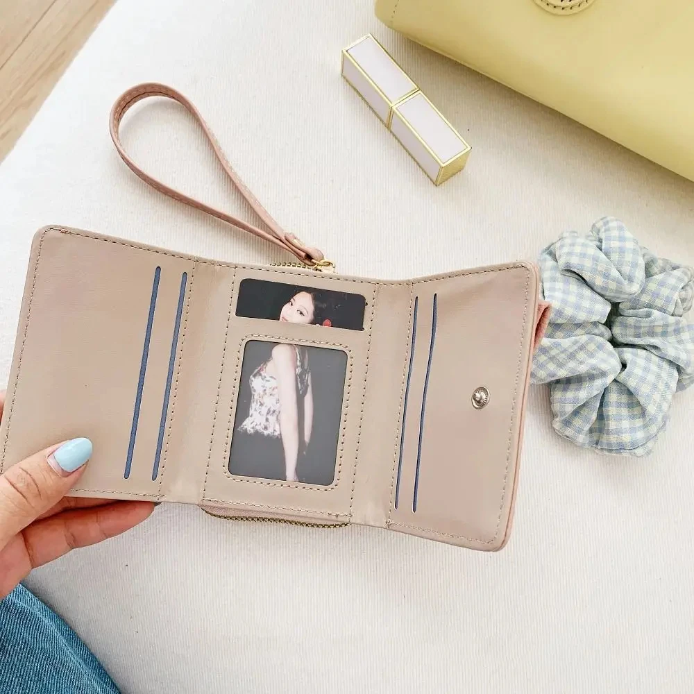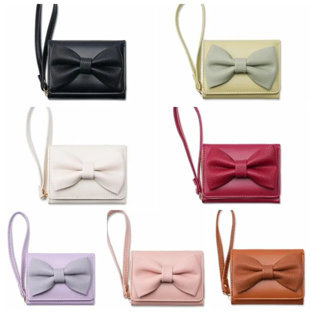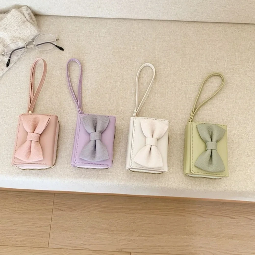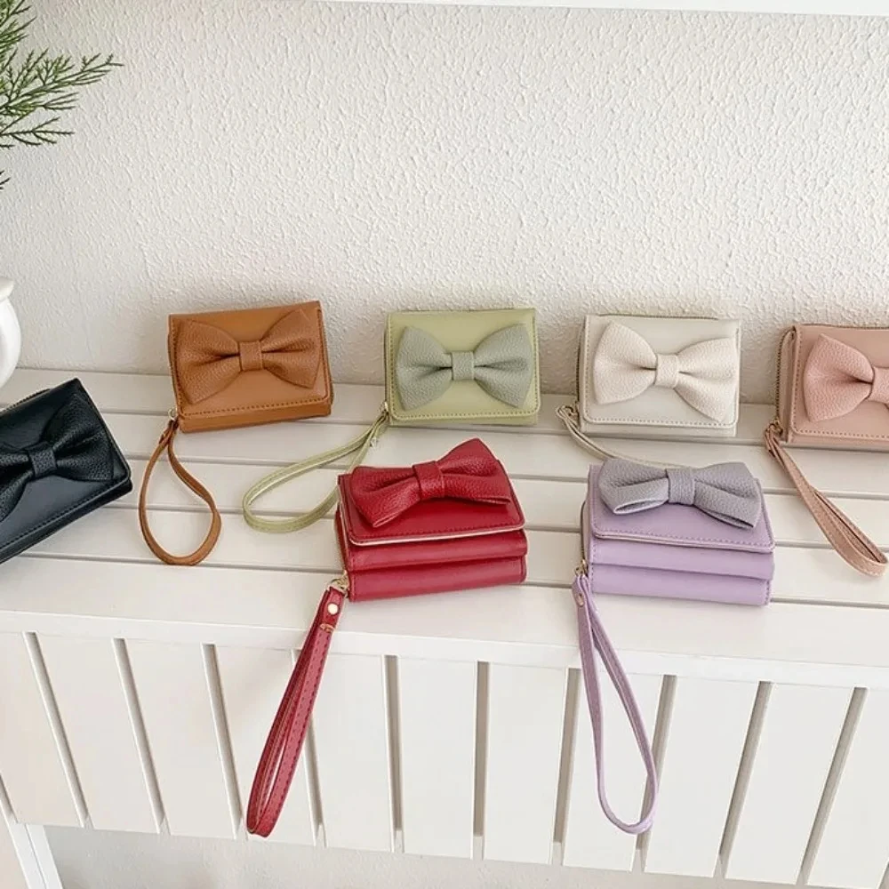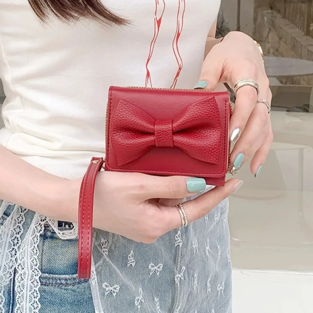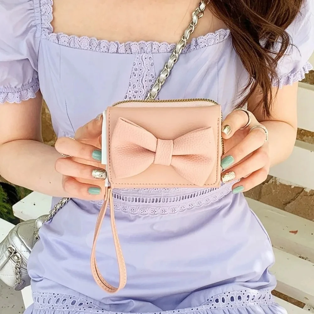 Fashion Wallets Girls Cute Bow Small Wallet Aesthetic Card Holder Classic Three Fold Purse For Women Student Simple Coin Pouch