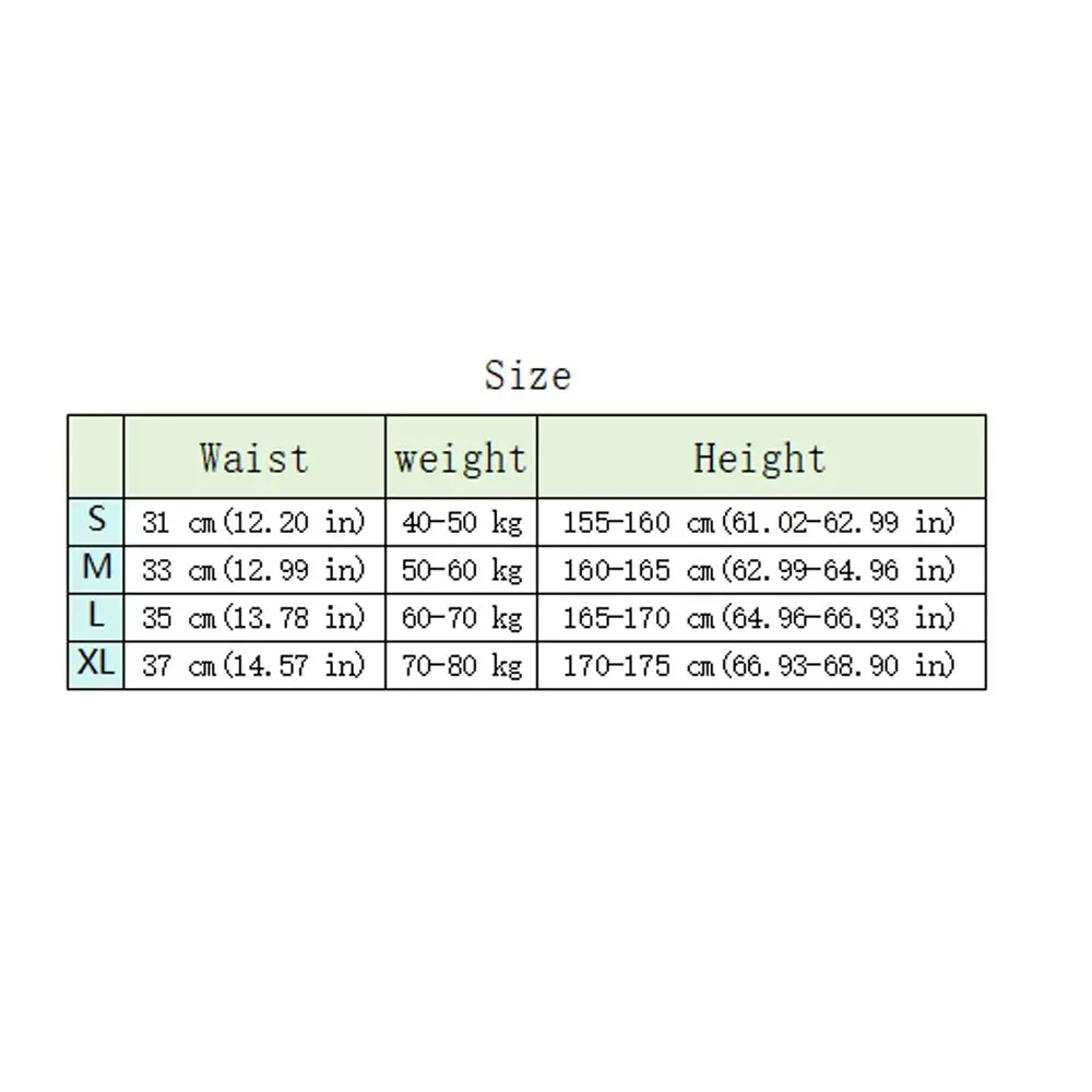 S size: Waist:31 cm(12.20 in), Height:155-160 cm(61.02-62.99 in), Weight: 40-50 kg